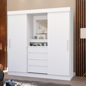Roupeiro Madri 3 Portas c/Espelho Branco